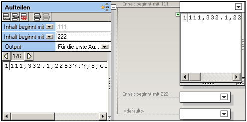 In der Abbildung oben sehen Sie den Anfangszustand des "Aufteilen"-Containers.