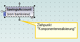 •Bewegen Sie den Cursor über den Ziehpunkt "Komponentenrealisierung" der Klasse und ziehen Sie ihn auf die Komponente BankView.