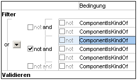 •Jede einzelne Bedingung kann durch Aktivieren des Kontrollkästchens Not (links neben der Bedingung) negiert werden.