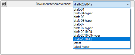 Sie können in der JSON-Schema-Ansicht die Version in der Auswahlliste am oberen Rand des Hauptfensters ändern (siehe Abbildung unten).