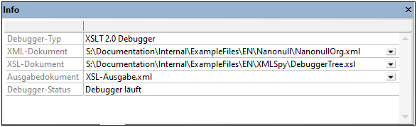 Navigation: XSLT/XQuery Debugger und Profiler > XSLT und XQuery Debugger > Informationsfenster