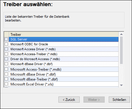 3.Wenn Sie aufgefordert werden, die Liste der bekannten Treiber für die Datenbank zu bearbeiten, wählen Sie die Datenbanktreiber für IBM DB2 aus (siehe Voraussetzungen) und klicken Sie auf Weiter.