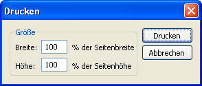 Wenn Sie in DatabaseSpy ein Diagramm drucken, können Sie festlegen wie viel Platz das Diagramm auf der Seite einnehmen soll. Nachdem Sie den Befehl Dieses Diagramm drucken... gewählt haben wird ein Dialogfeld Drucken angezeigt, in dem Sie die Prozentsätze für Seitenhöhe und Seitenbreite eingeben können.