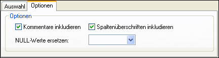 Wählen Sie aus der Dropdown-Liste NULL-Werte ersetzen den String aus bzw. geben Sie den String ein, der in der Excel-Datei an den Stellen aufscheinen soll, an denen die exportierten Daten einen NULL-Wert enthalten. Sie können auch einen Wert eingeben, der nicht in der Dropdown-Liste enthalten ist.