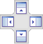 Wenn Sie ein Fenster mit der Maus ziehen, erscheint ein Positionierungselement bestehend aus vier Pfeilen. Jeder Pfeil entspricht einer Seite des Editor-Fensters. Wenn Sie die Maustaste beim Ziehen eines Fensters über einem dieser Pfeile loslassen, wird das gezogene Fenster an dieser Seite angedockt.