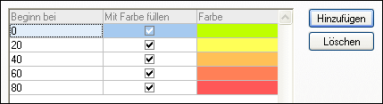 In Einzelwertdiagrammen können Sie die Darstellung des Diagramms anpassen, indem Sie bestimmten Wertebereichen Farben zuweisen.