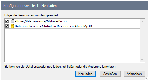 Sie haben nun zwei Konfigurationen für die Ressource "MyInsertScript" erstellt:
