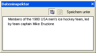 Das Dateninspektorfenster wird geöffnet und zeigt den Inhalt der markierten Datenzelle an.
