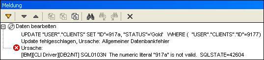 Die aktualisierten Daten werden nicht sofort in der Datenbank übernommen, sondern nur im Ergebnisraster angezeigt. Damit die Daten tatsächlich in der Datenbank übernommen werden, bietet das Ergebnisfenster in seiner Symbolleiste eine Übernehmen-Schaltfläche.