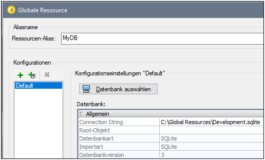 Sie haben nun zwei Konfigurationen für die Ressource "MyDB" erstellt: