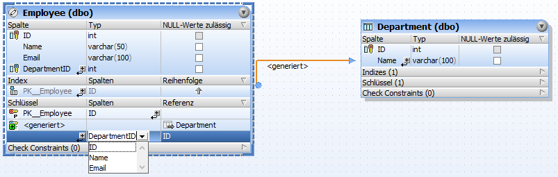 Die referenzierende Spalte (in diesem Beispiel Department.ID) muss entweder Teil eines Primärschlüssels oder eines eindeutigen Schlüssels sein.