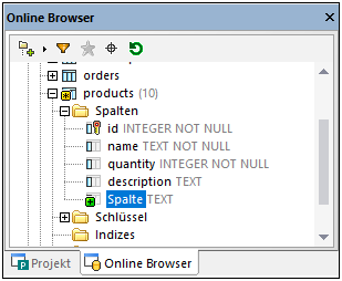 Spalten können über den Online Browser, den Design Editor oder durch Generierung von SQL-Code (siehe unten) zu einer vorhandenen Tabelle hinzugefügt werden. Wie Sie Spalten umbenennen, finden Sie unter Umbenennen von Datenbankobjekten. Wie Sie Spalten löschen, finden Sie unter Löschen von Datenbankobjekten.