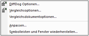 Das Menü Extras enthält Befehle mit denen Sie die Applikationsoptionen und Vergleichsoptionen einstellen und DiffDog anpassen können.