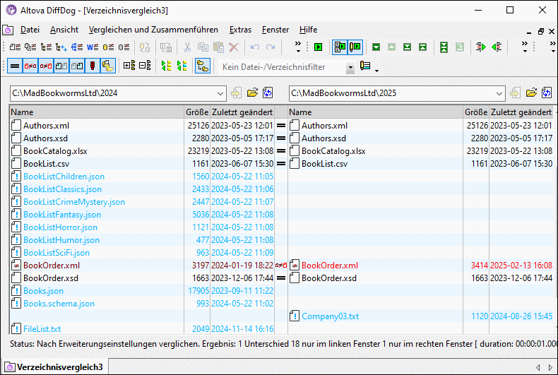 5.Klicken Sie auf OK. Ein neues Verzeichnisvergleichsfenster wird mit den ausgewählten Verzeichnissen geöffnet.