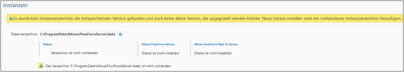 2.Wählen Sie ein vorhandenes Instanzdatenverzeichnis, das flowforce.db und andere FlowForce-Dateien enthält, aus.