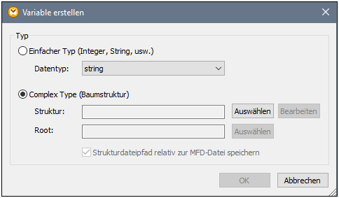 2.Wählen Sie den Typ der gewünschten Variable aus (einfacher Typ oder complex Type).