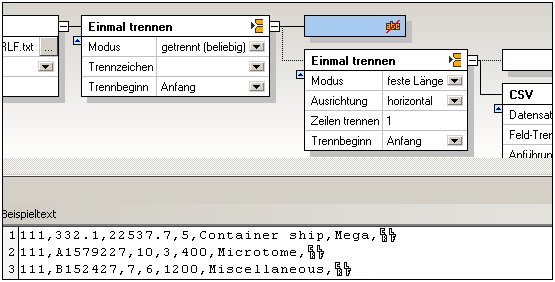 Wenn Sie die Textvorlage in MapForce einfügen, hat sie die unten gezeigte Struktur. Zwischen den beiden "Einmal trennen"-Elementen gibt es kein Element, das gemappt werden kann.