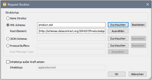 Nachdem Sie das Dialogfeld Request-Struktur geöffnet haben, wählen Sie im Abschnitt Strukturtyp eine der folgenden Optionen aus:
