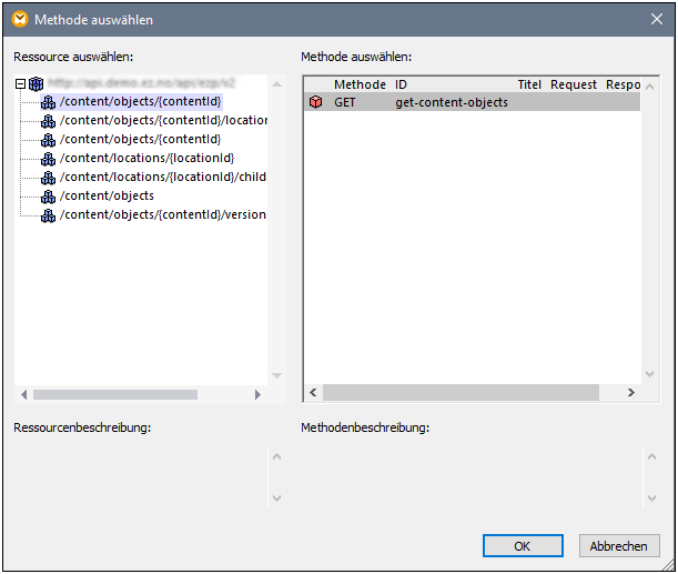 4.Wählen Sie im Dialogfeld Methode auswählen (Abbildung unten) die Ressource und Methode aus und klicken Sie auf OK.