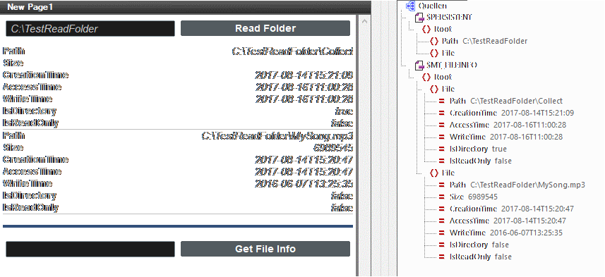 •Bei Klick auf Read Folder werden die Daten zu den Ordnereinträgen ausgelesen und an die File-Elemente von $MT_FILEINFO übergeben.
