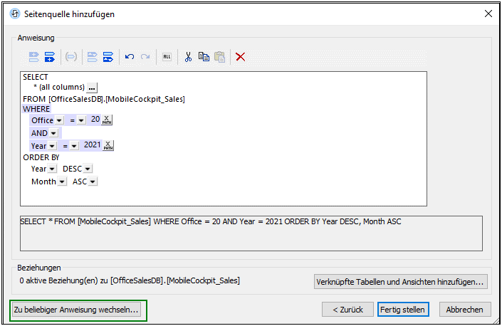 Hinzufügen/Ändern einer SELECT-Anweisung