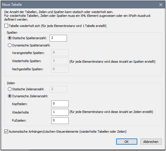 Unterschied zwischen einer sich wiederholenden Tabelle und einer dynamischen Tabelle mit sich wiederholenden Zeilen