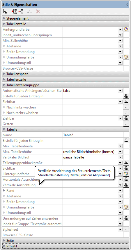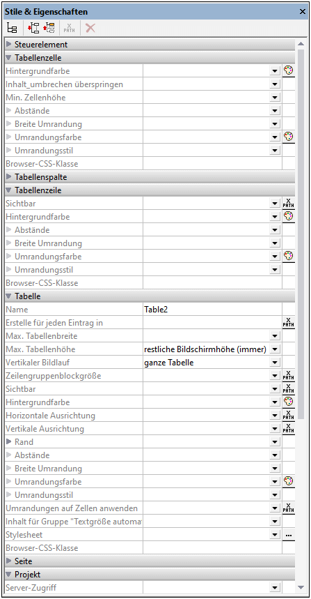 Diese Eigenschaften werden im Kapitel Steuerelement "Tabelle" beschrieben.