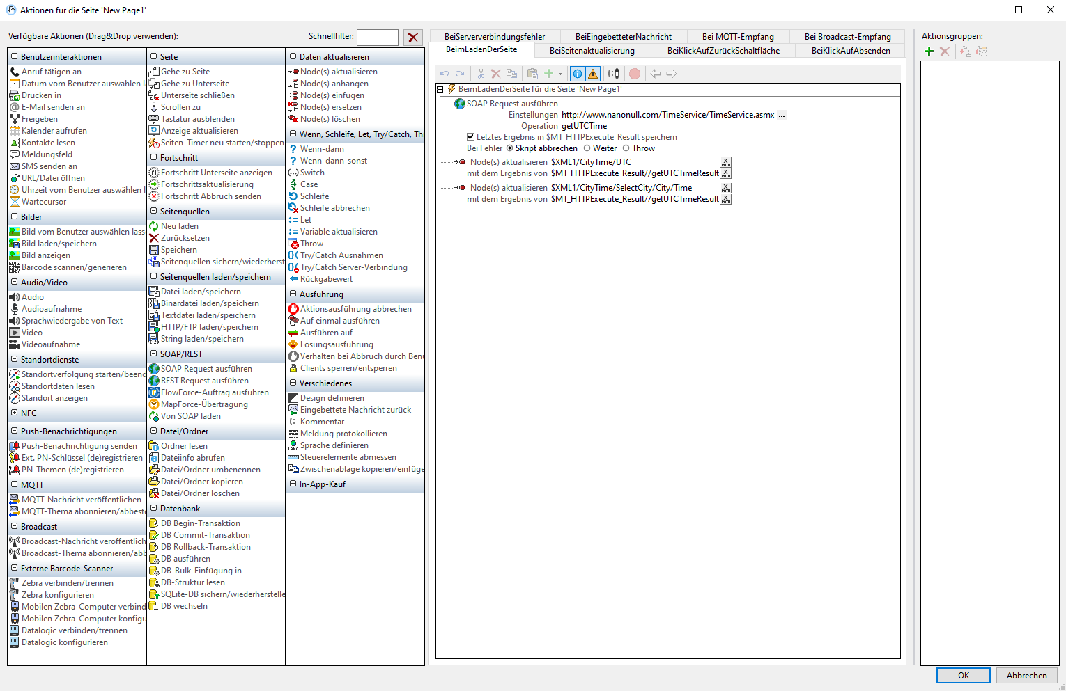 •BeimLadenDerSeite: Es kann eine Gruppe von Aktionen definiert werden, die beim Laden der Seite ausgeführt werden sollen.