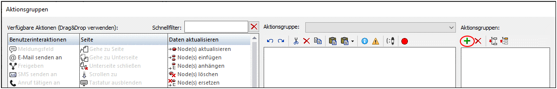 3.Klicken Sie im daraufhin angezeigten Dialogfeld "Aktionsgruppen" (Abbildung unten) auf die Schaltfläche Gruppe hinzufügen des Bereichs "Aktionsgruppen" (in der Abbildung rot umrandet).