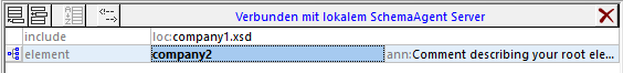 Wir werden in diesem Beispiel die Komponenten "address" und "employee" aus dem Schema company1.xsd im Schema company2.xsd inkludieren. Beide Schemas befinden sich im SchemaAgent-Ordner Examples\Tutorial\include2.
