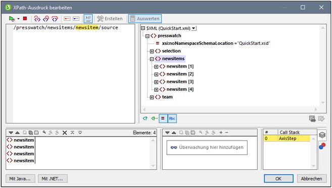 Das Debuggen eines XPath-Ausdrucks erfolgt in den folgenden Schritten: