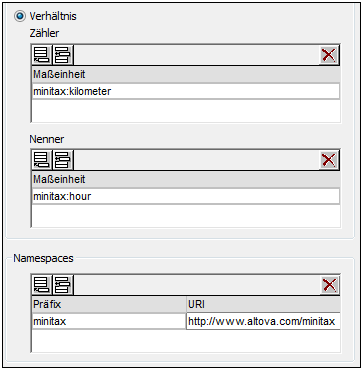 Wenn Sie z.B. über die Einheit "kilometer/hour" iterieren möchten, definieren Sie die Vorlage im geschlossenen Modus als ein Verhältnis, das einen entsprechenden Zähler und Nenner hat (siehe Abbildung oben). Der/die Namespace/s der Einheiten (Units) muss/müssen im Bereich Namespaces definiert werden.