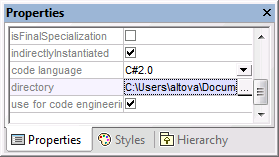 3.Ändern Sie das Code Engineering-Verzeichnis z.B. in C:\Users\Altova\Documents\UMODEL_WORK\codegen.