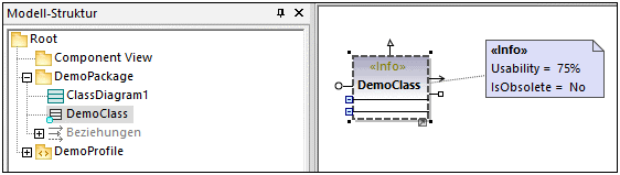 2.Klicken Sie auf die Klasse "DemoClass" und aktivieren Sie im Fenster "Eigenschaften" das Kontrollkästchen «StylingStereotype».
