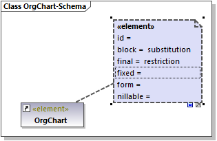 Nach dem Import eines XML-Schemas werden bestimmte Schemainformationen im Diagramm eventuell als Eigenschaftswerte angezeigt, wenn Sie beim Import die Option Schemainformationen als Eigenschaftswerte anzeigen aktiviert haben.
