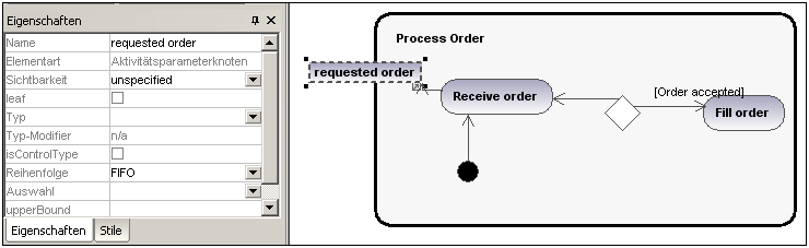 •Elemente, die innerhalb einer ActivityPartition platziert werden, werden Teil davon, sobald die Umrandung markiert erscheint.
