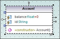 2.Geben Sie als Operationsnamen "Account()" ein. Beachten Sie, dass sich das Stereotyp in <<constructor>>, geändert hat, da der Operationsname mit dem Klassennamen identisch ist.