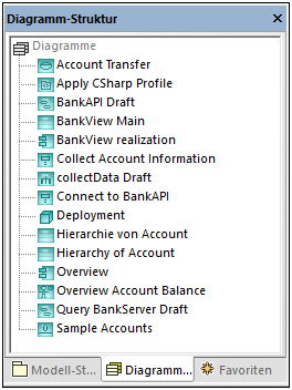 Die Diagramme werden auch im Fenster "Modell-Struktur" unterhalb der Pakete, zu denen sie gehören, angezeigt., z.B.: