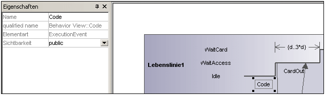 Das ExecutionEvent "Auslösendes Ereignis" ic-time-event dient dazu, eine Änderung im Zustand eines Objekts anzuzeigen, die durch das entsprechende auslösende Ereignis verursacht wurde. Die eingehenden Ereignisse werden mit einer Beschriftung versehen, um das Ereignis zu kennzeichnen, das die Zustandsänderung verursacht.