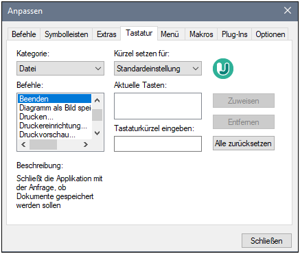 So weisen Sie einem Befehl ein neues Tastaturkürzel zu:
