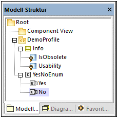 6.Klicken Sie mit der rechten Maustaste auf das "DemoProfile" und wählen Sie im Kontextmenü Neues Element | Enumeration. Benennen Sie die Eumeration in "YesNoEnum" um.