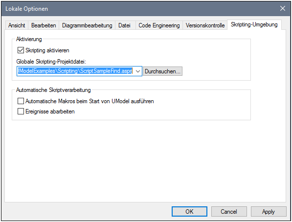 ob die Skripting-Umgebung für das aktuelle UModel-Projekt aktiv sein soll.