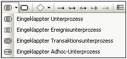Über das Dropdown-Symbol der Schaltfläche "Aufgeklappter Unterprozess" können Sie den entsprechenden aufgeklappten Unterprozess einfügen.