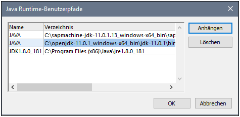 4.Klicken Sie auf Anhängen und navigieren Sie zum Verzeichnis für das jeweilige JDK.
