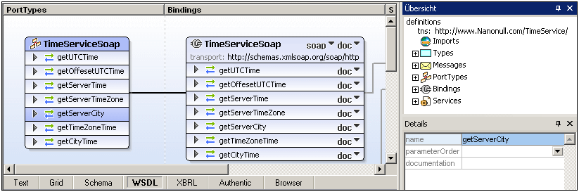 Siehe auch: Weitere Informationen zur Arbeit mit WSDL-Dokumenten finden Sie in den Abschnitten WSDL Tutorial und Menübefehle | Menü "WSDL".