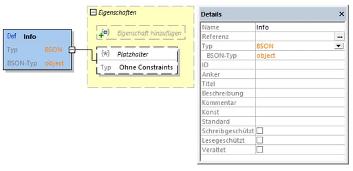 Nach Aktivierung der BSON-Bearbeitungsebene stehen für JSON-Objekte, -Eigenschaften und Array-Elemente BSON-Datentypen zur Verfügung. Die Definition, dass eine Komponente ein BSON-Typ ist, erfolgt in zwei Schritten: