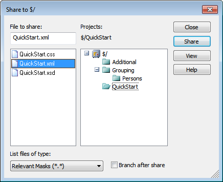 Nähere Informationen zum Freigeben von Dateien über Ihr Versionskontrollsystem finden Sie in der Benutzerdokumentation zu Ihrem Versionskontrollsystem.