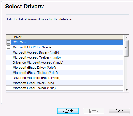 3.Wählen Sie ODBC aus und klicken Sie auf Weiter. Wenn Sie aufgefordert werden, die Liste der bekannten Treiber für die Datenbank zu bearbeiten, wählen Sie die Datenbanktreiber für IBM DB2 aus (siehe Voraussetzungen) und klicken Sie auf Weiter.