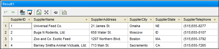 To view the imported data, right-click the tblFeedSuppliers table in the Online Browser and select Retrieve data | All rows from the context menu (alternatively, press Ctrl+Alt+R).