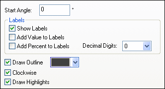 The color that you can select next to the Draw Outline check box is used for the optional border drawn around the chart and the individual pie segments. The Clockwise check box allows you to specify whether the rows should be listed clockwise or counter-clockwise.